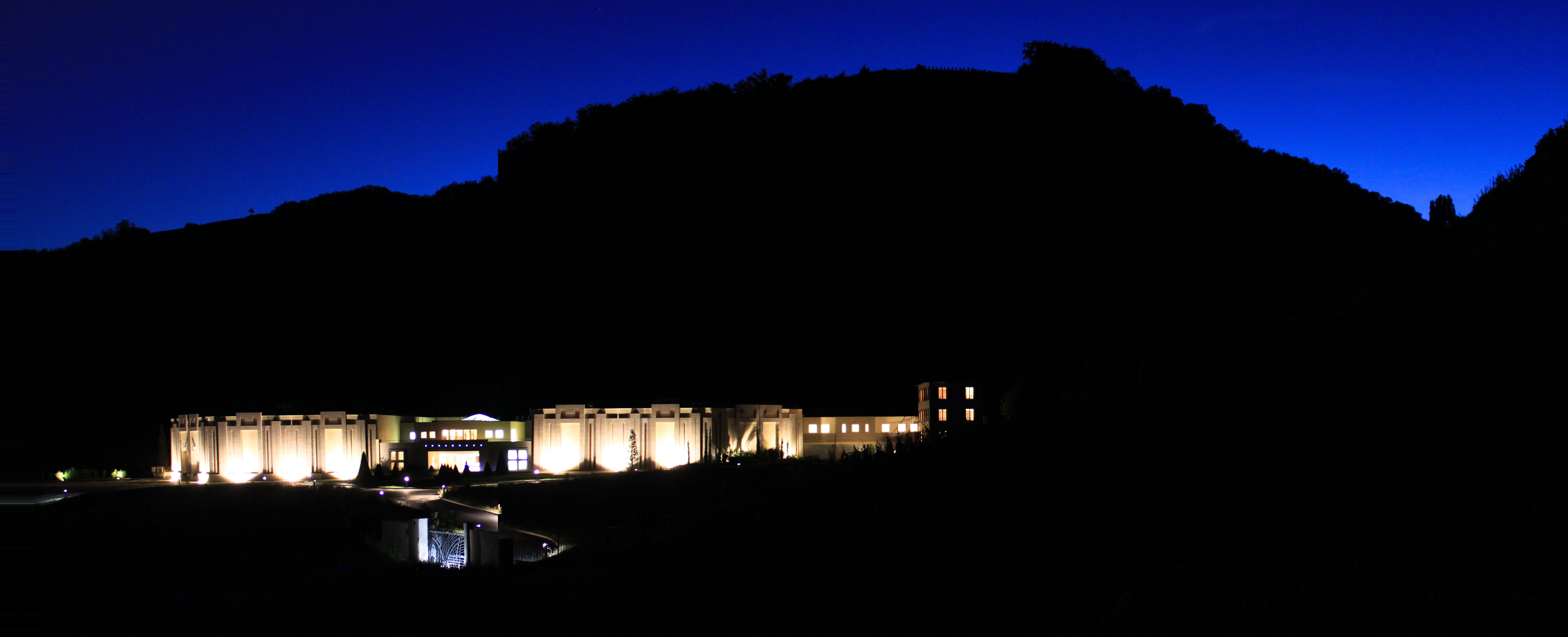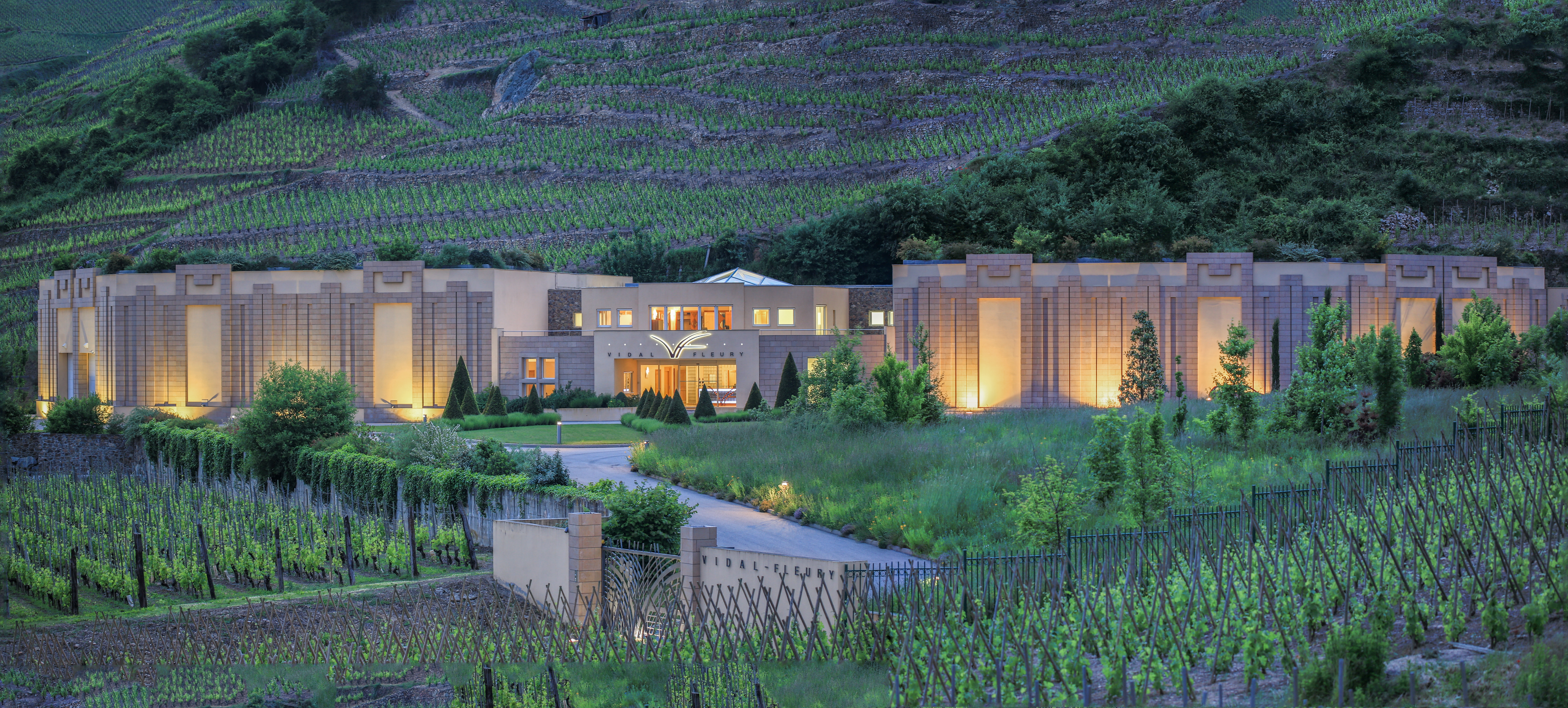 Côte-Rôtie, Cave Vidal-Fleury, éclairage au crépuscule.